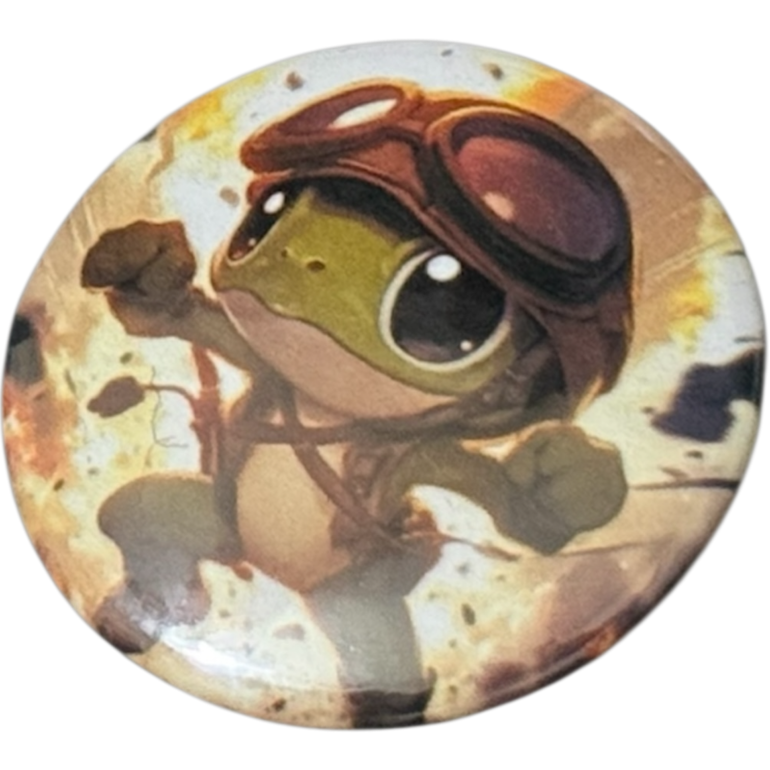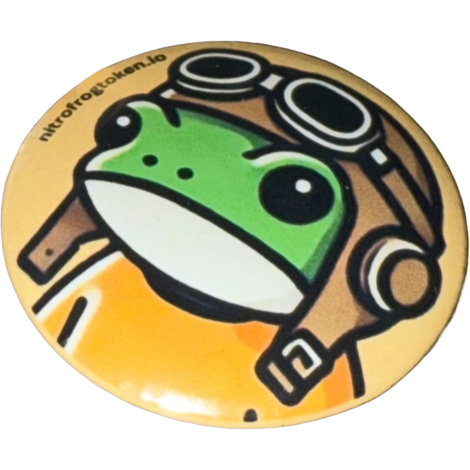 Fuel your collection with pixel-perfect power in this NITRO Pixel Jet Button, featuring everyone’s favorite crypto frog flying his fighter jet through a matrix of green candlesticks. With sharp 8-bit styling, a black jet marked “NITRO,” and a fire-red thruster trail, this button captures the spirit of old-school arcade games fused with modern blockchain momentum.